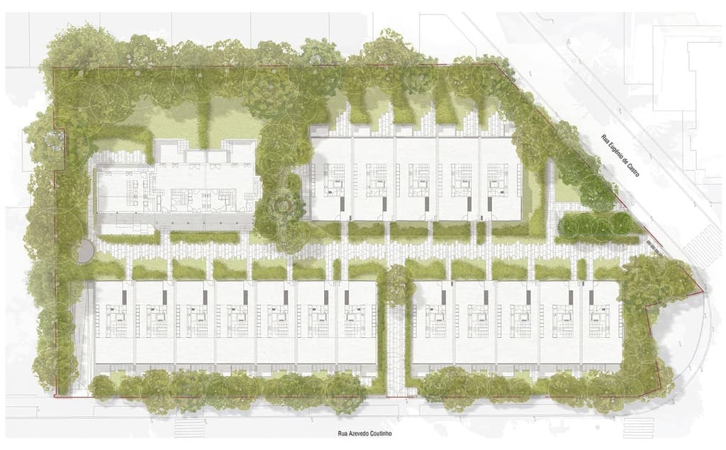 Este projeto de arquitetura consiste na construção de 20 habitações unifamiliares em 4 módulos e de 4 tipos, A, B, C e D.